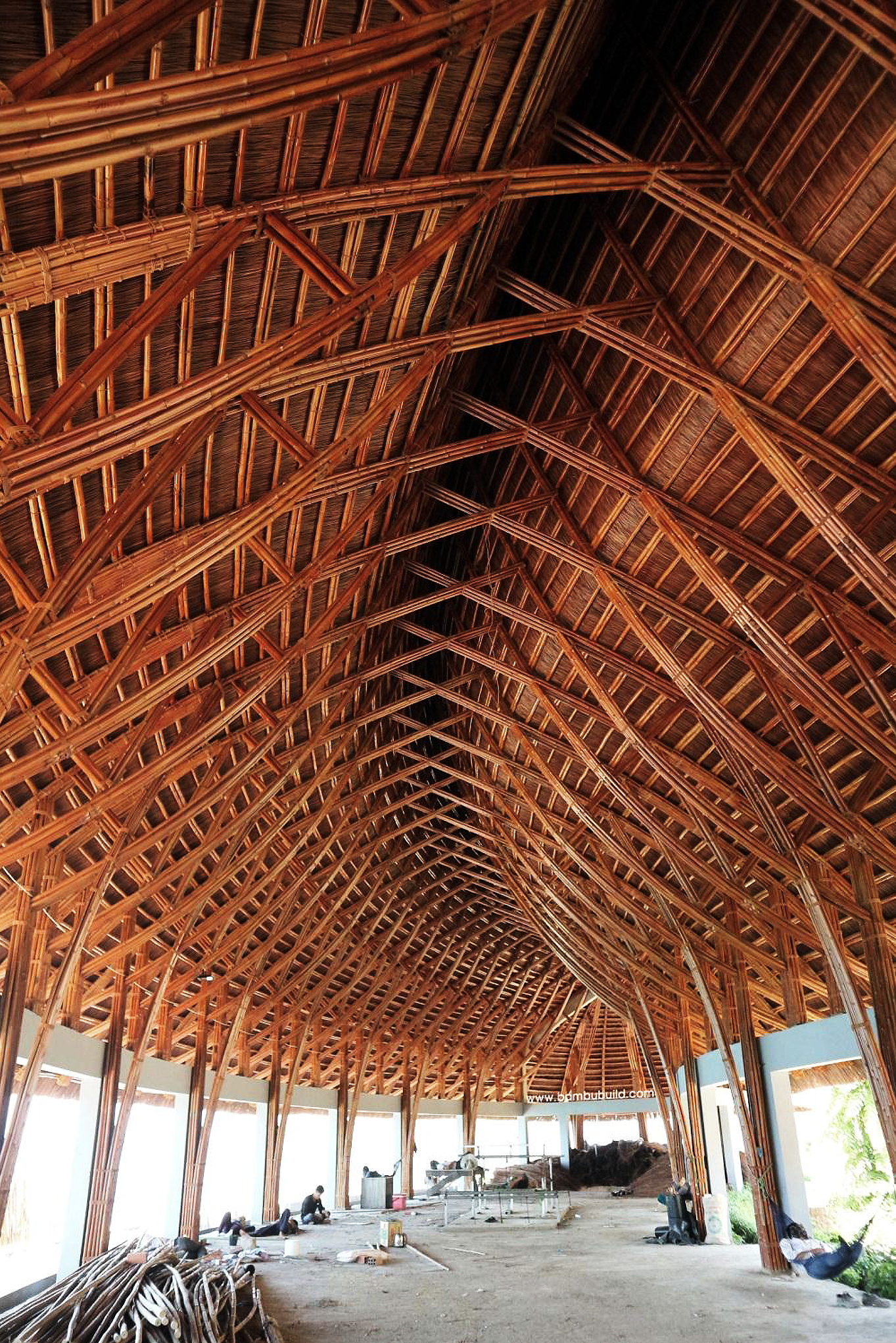 Công trình sử dụng các kỹ thuật đơn giản nhưng rất hiệu quả để lắp đặt các kết cấu tre, bao gồm việc xếp chồng các khung tre và liên kết chúng bằng bu lông tre và dây thừng polyester, tạo thành các khung vững chắc. Các kết cấu này được lắp dựng dễ dàng và nhanh chóng, giúp tiết kiệm thời gian thi công mà không làm giảm chất lượng công trình.