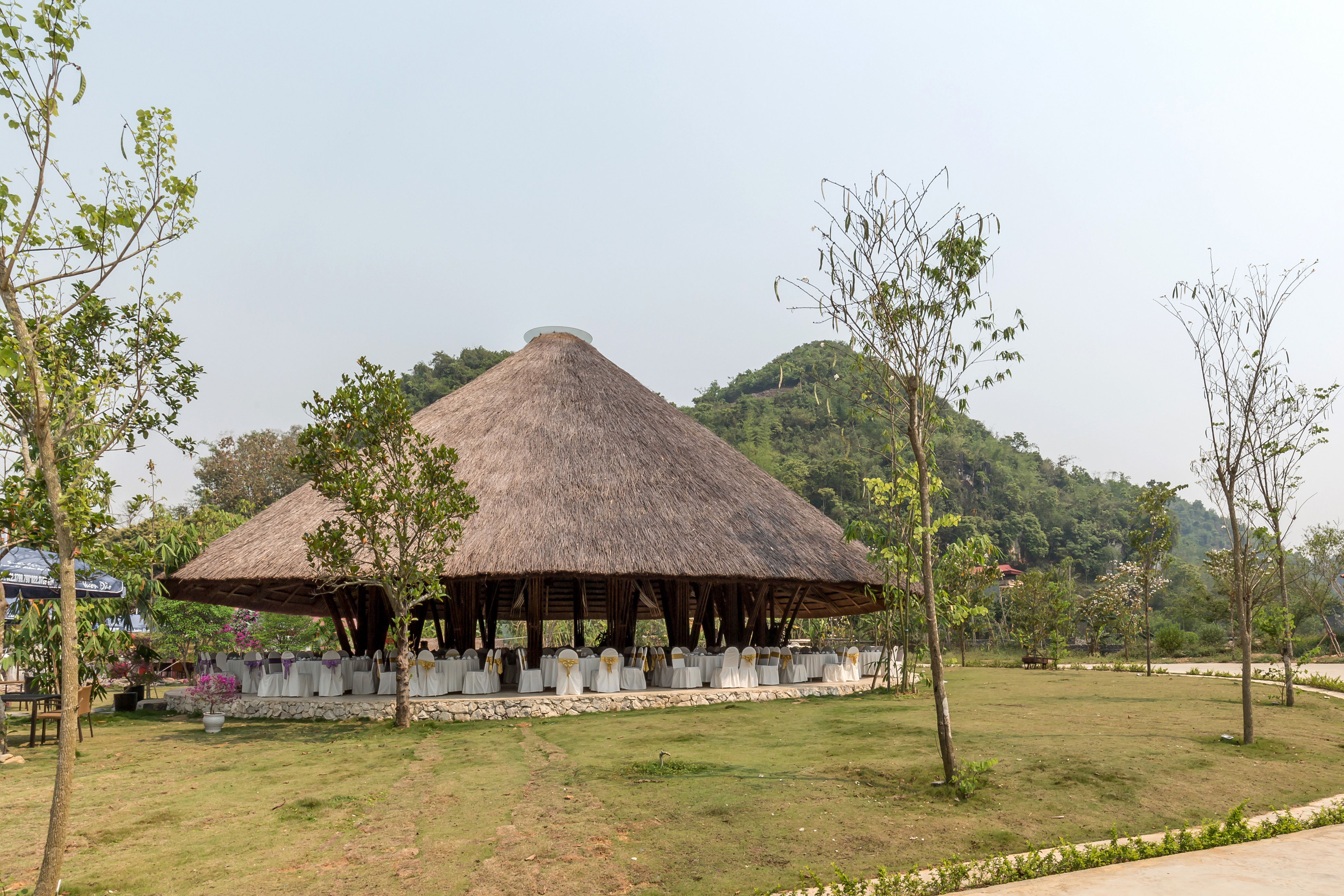 Nhà hàng Suối Hẹn là một công trình ấn tượng về kiến trúc, với thiết kế độc đáo từ tre và lá dương xỉ. Công trình không chỉ tạo nên không gian thư giãn tuyệt vời mà còn góp phần bảo vệ môi trường, mang đến một không gian xanh gần gũi với thiên nhiên.
