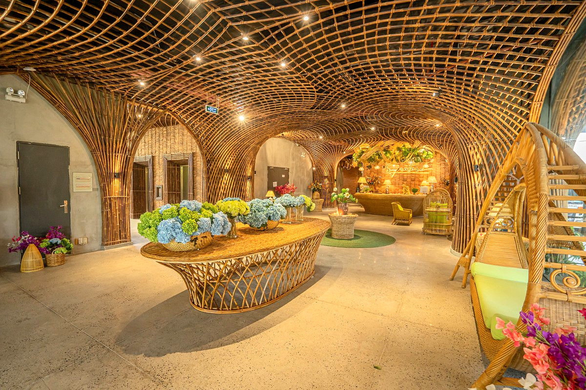 Nằm trong khuôn viên The Signature Hotel, công trình này không chỉ đơn giản là không gian lễ tân mà còn là nơi du khách cảm nhận được sự tinh tế trong thiết kế, hòa mình vào không gian tự nhiên với các chi tiết tre độc đáo, tạo sự khác biệt cho khách sạn tại thành phố biển Nha Trang.
